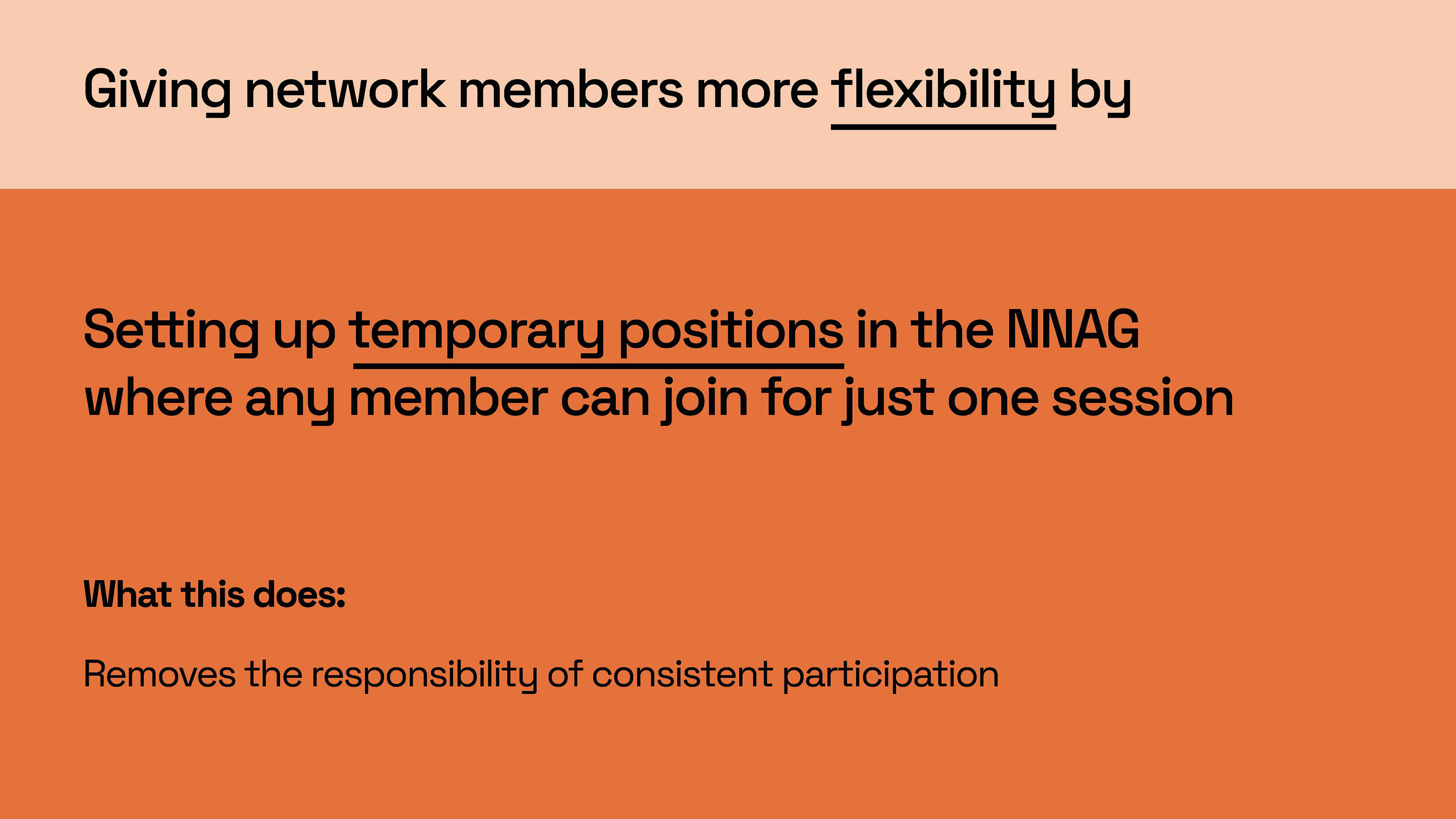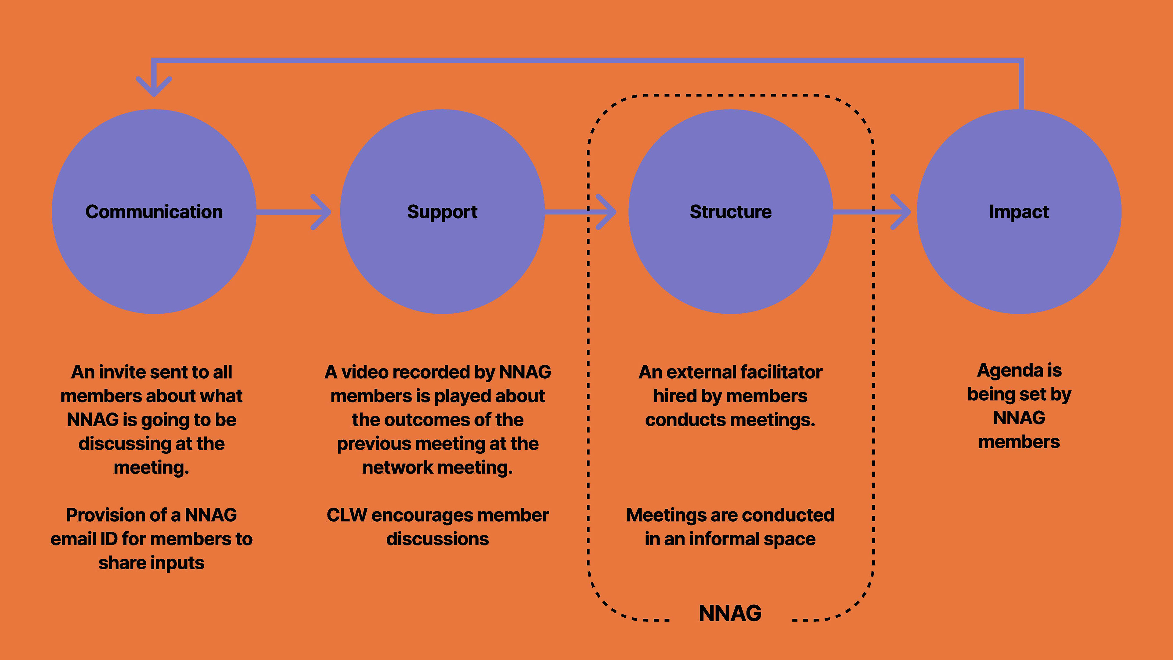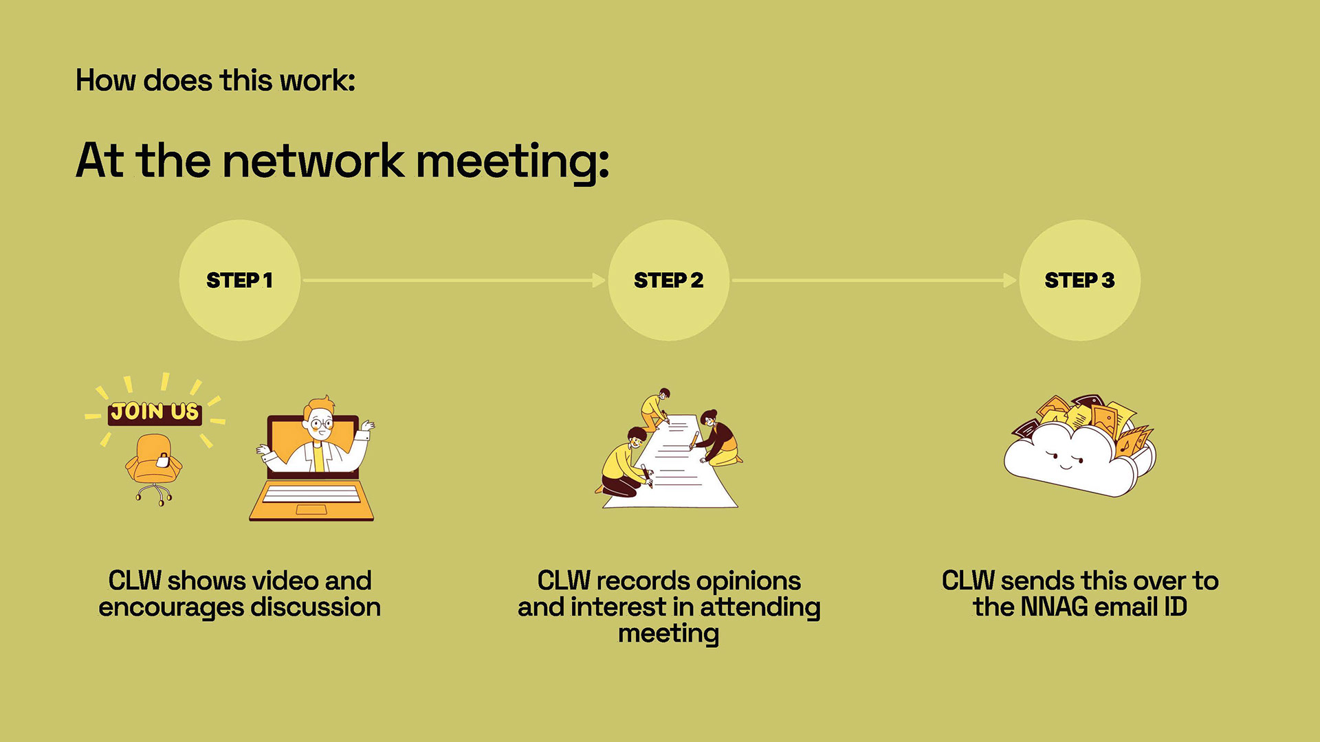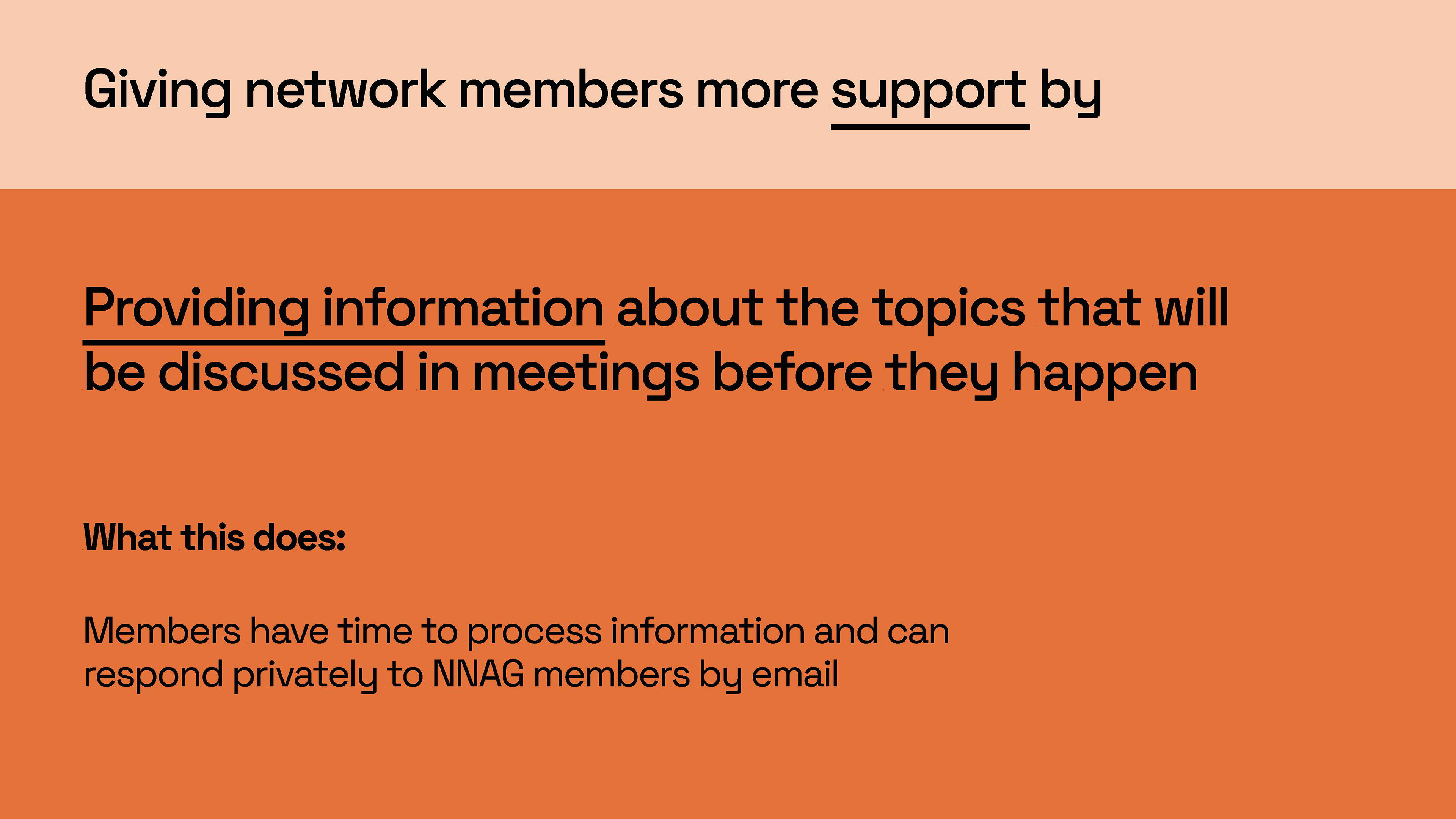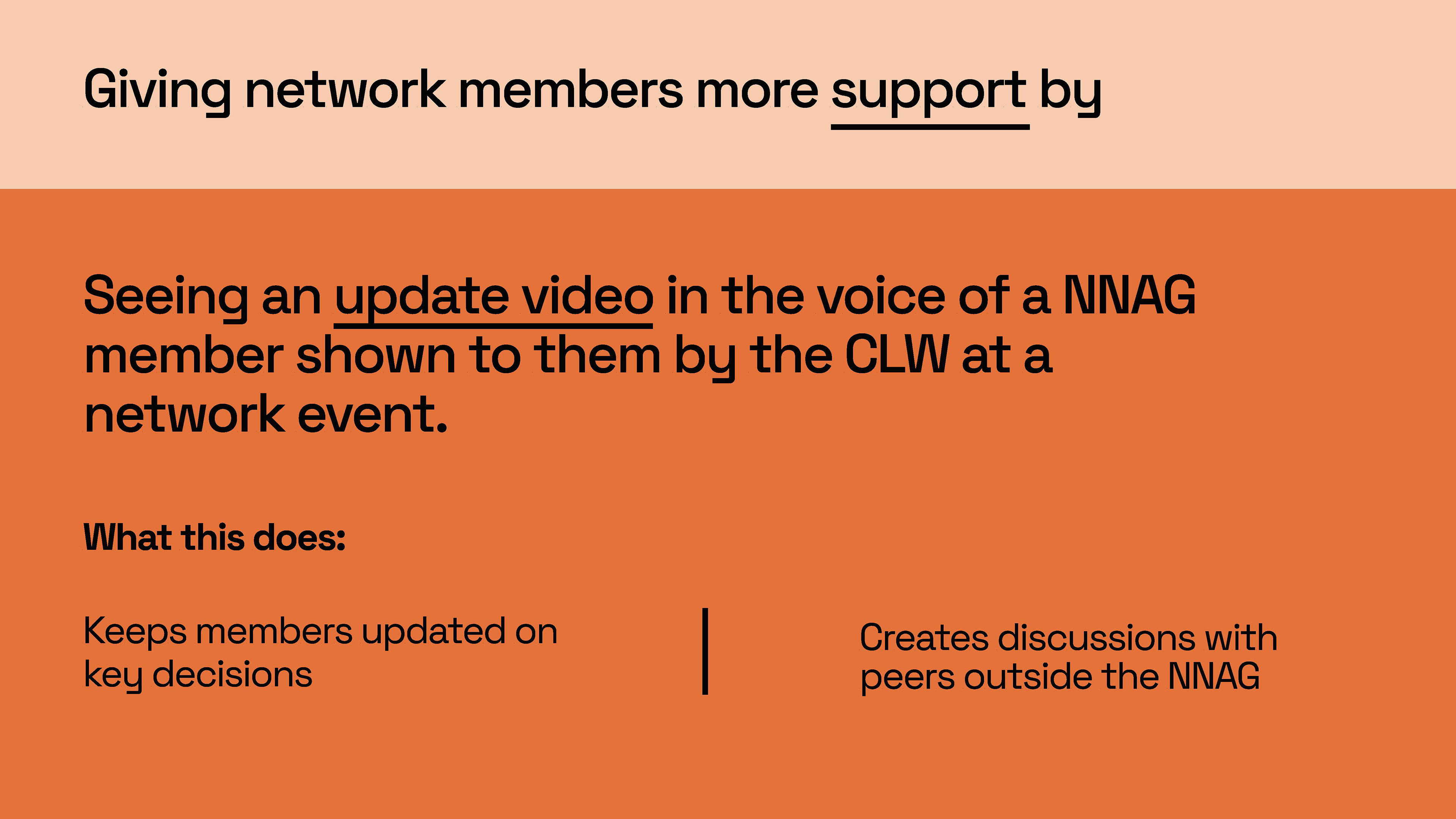 NNAG members record short video updates after each meeting, shared at monthly network meetings so members know what NNAG is, who is involved, and can make an informed decision about joining.