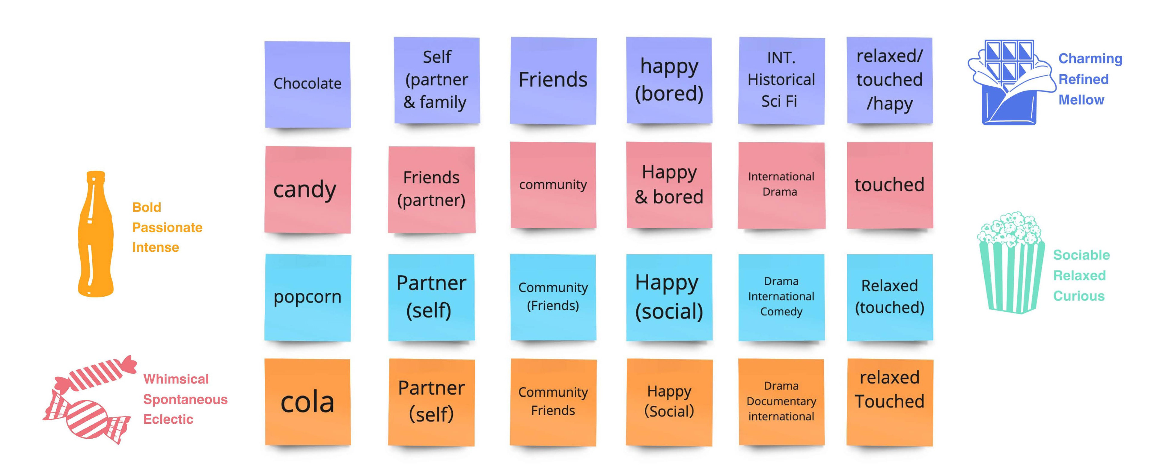 reflections: this was a good tool for starting the conversation with the GFT's customers, it was eye-catching and lots of people were interested in the board. However, capturing the data was time consuming (unwinding the yarn) and there were some questions around accessibility due to the physical nature of the board. The personality data helped to shape archetypes, but we could have developed these to make them more meaningful categories.