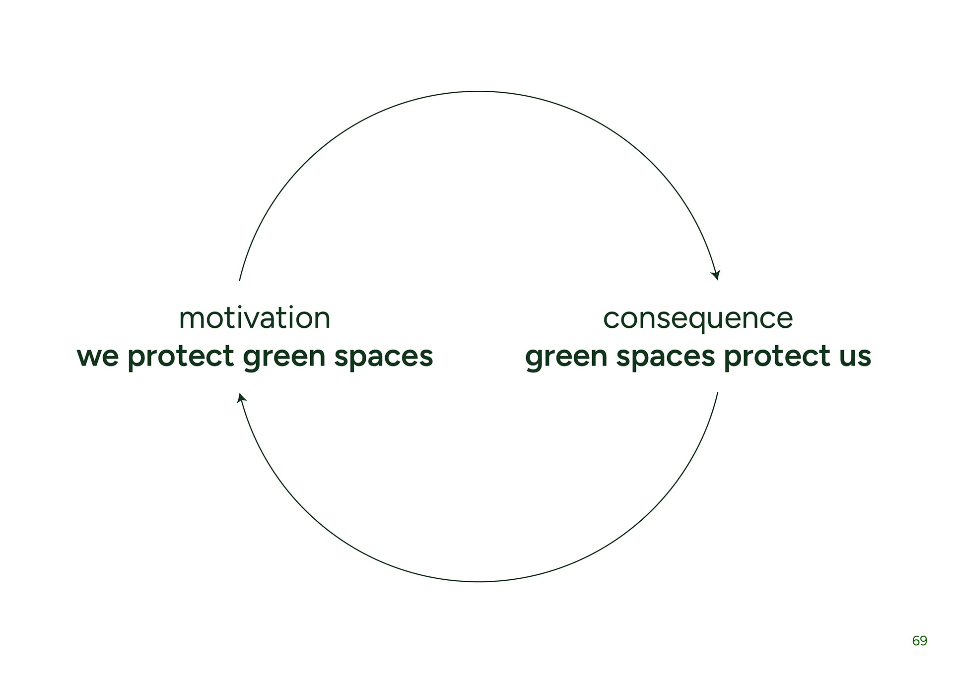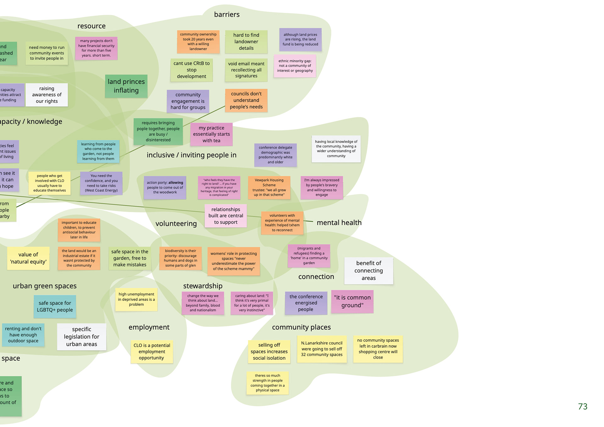 The interconnected circles map below shows how different organisations spoke about green spaces and their value to areas for a multitude of reasons.